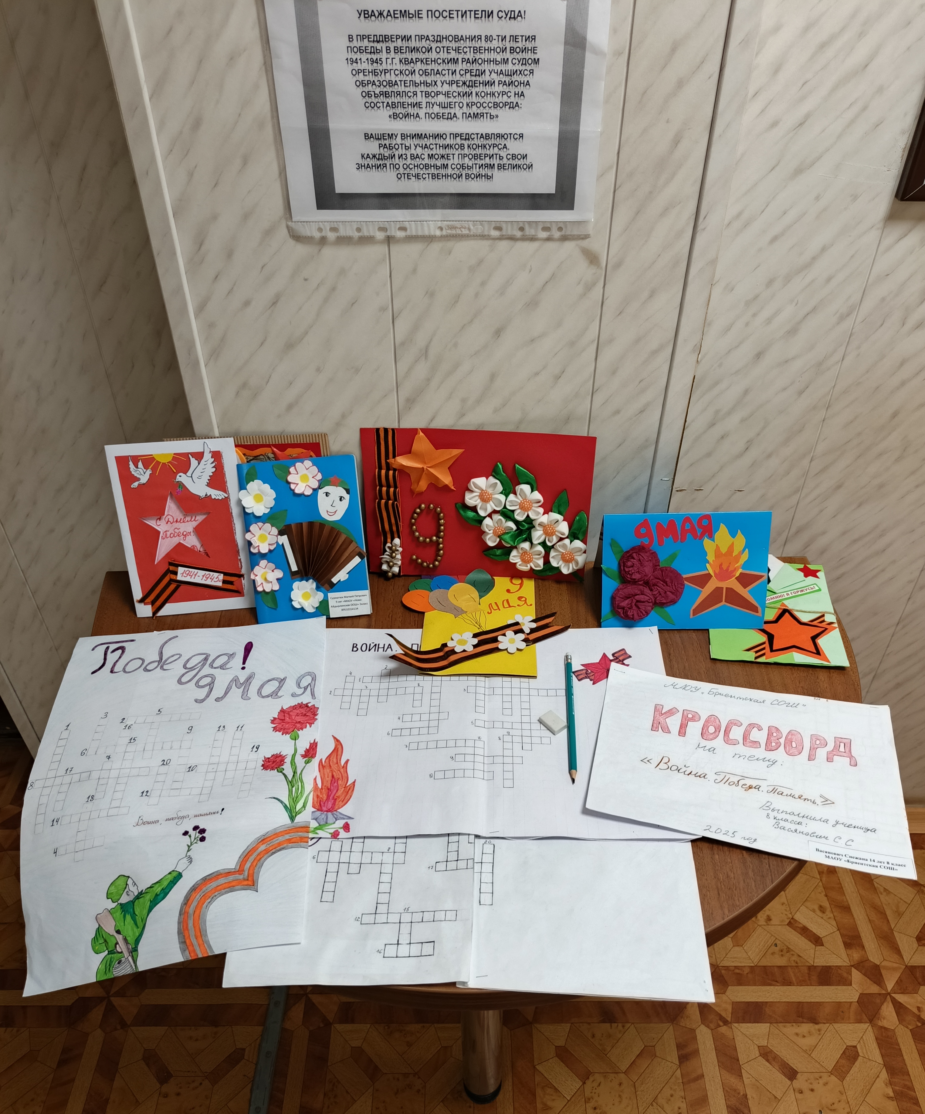 Кваркенский районный суд Оренбургской области присоединился к всероссийской акции «Георгиевская ленточка», сотрудники суда вручали ленточки посетителям, рассказывая о правилах ее ношения. Акция проходит с целью сохранения памяти о воинах, погибших при защите Отечества и приурочена к 80-й годовщине Победы в Великой Отечественной войне 1941-1945 г.г. Символ Великой Победы имеет два цвета – черный и оранжевый, они означают дым и пламя - символ героизма, отваги, воинской доблести и мужества всех тех, кто встал на защиту своей Родины. ![]() Судом среди учащихся образовательных учреждений района был объявлен конкурс «Война.Победа.Память» на составление лучшего кроссворда. Работы ребят размещены в фойе здания, любой посетитель может проверить свои знания по основным событиям Великой Отечественной войны. ![]() |